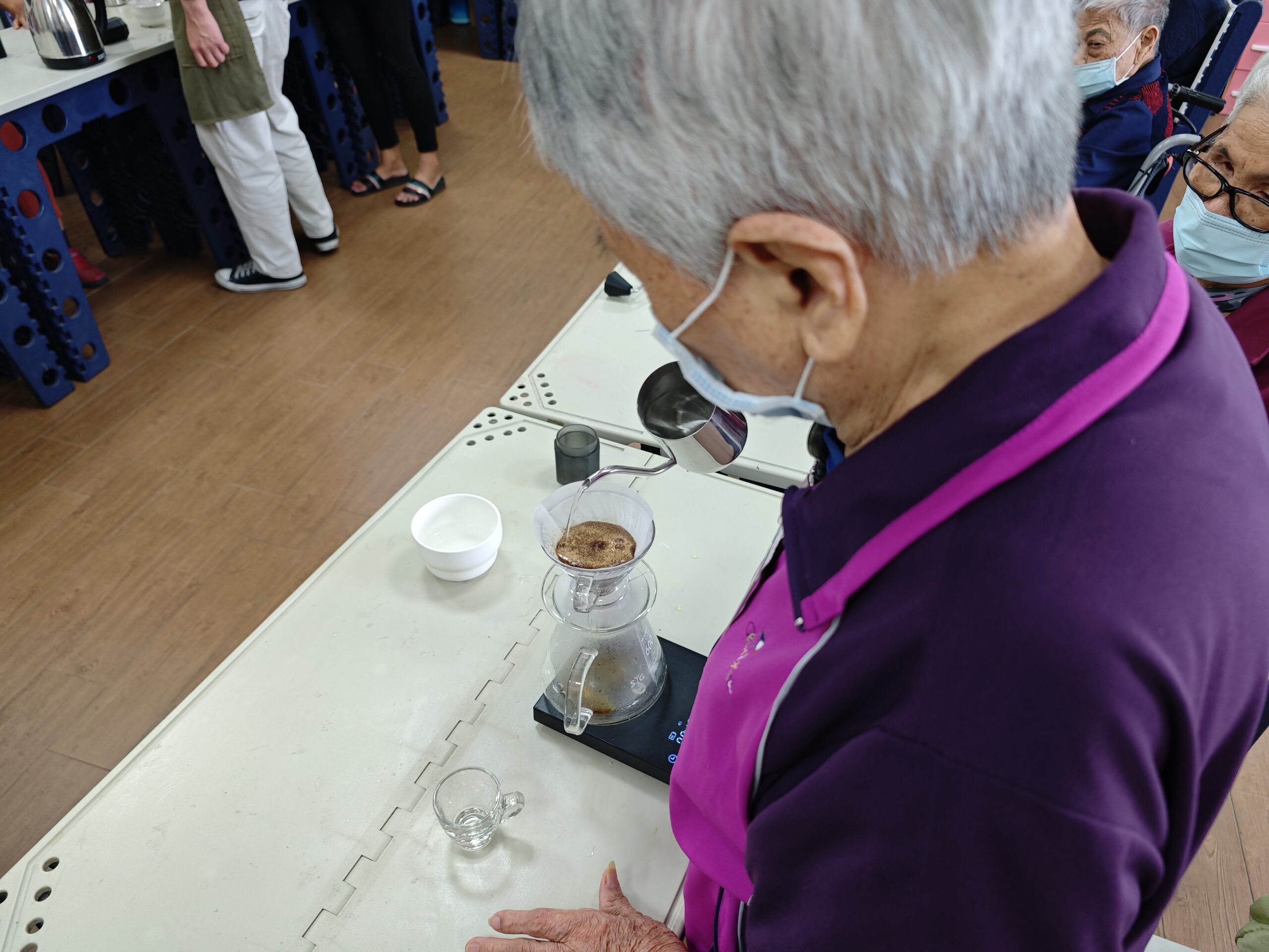 開創生活化新課程,帶入手沖咖啡、義式咖啡、烘豆、點心烘焙等長者以前沒有接觸過的新鮮課程,課程設計主要是為了延緩失能為主,同時依照不同學員的興趣喜好及能力進行調整,無論是長者或身障者都能有完善的體驗,動動手也動動腦。
